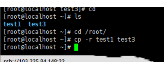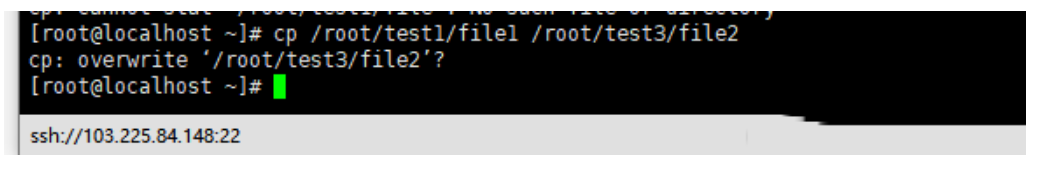示例:将/test1目录下的file1复制到/test3目录,并将文件名改为file2,可输入以下命令: