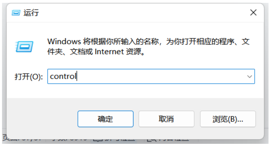 2.在运行窗口,输入control命令,打开控制面板