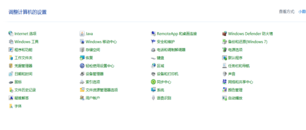 3.在控制面板,将查看方式设置为“小图标”。