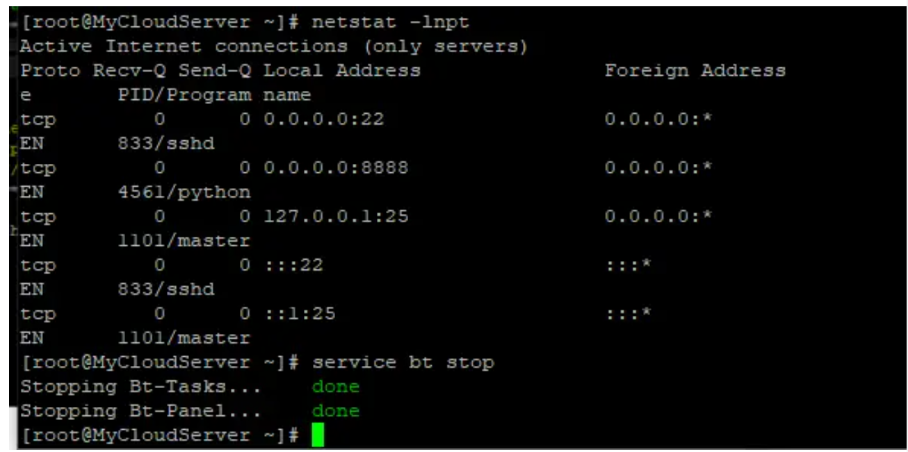 这台机器我只安装了宝塔只需要执行service bt stop 回车关闭bt服务(如果有在宝塔安装其他服务的也需要关闭)