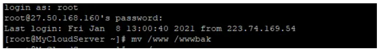 3.然后执行mv /www /wwwbak 回车 把www目录改名成wwwbak(这边目录名字可以随意改 自己喜欢就行