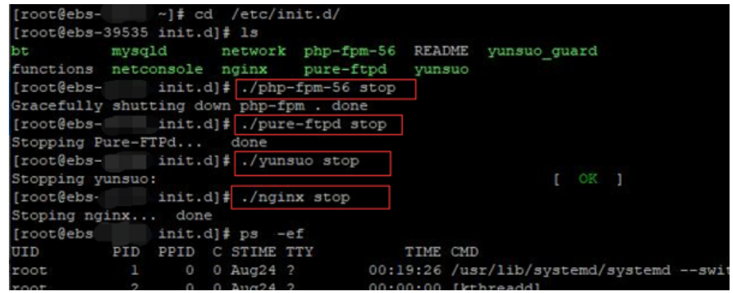 最后启动之前停止的服务/etc/init.d/httpd start,也可执行reboot命令重启下服务器让系统自动启动运行的服务。
