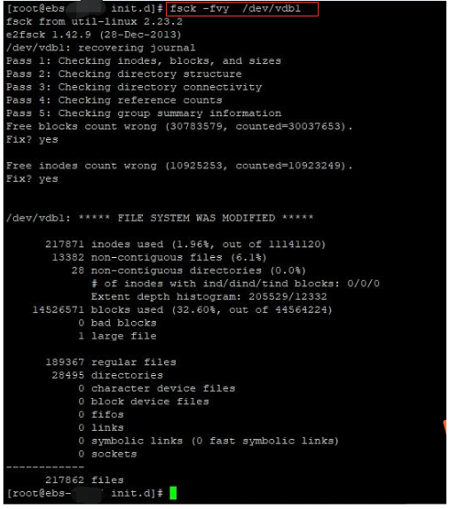 [root@localhost ~]#fsck -fvy /home