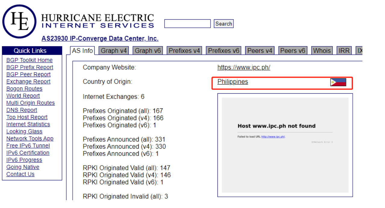 在ASN编号页面可以看到运营商所在的国家。如果所在国家和服务器地理位置一致,那么就是原生IP。