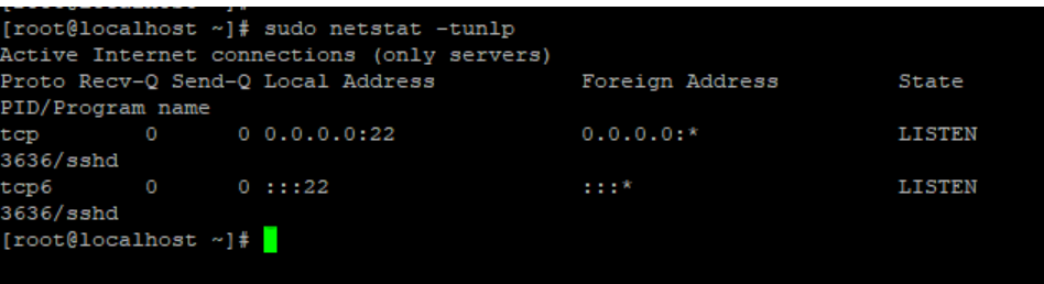 2.如果要过滤结果,请使用 grep 命令。例如,要查找在 TCP 端口 22 上侦听的进程,请键入: