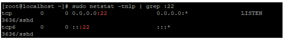 sudo netstat -tnlp | grep :22