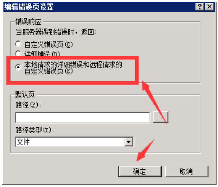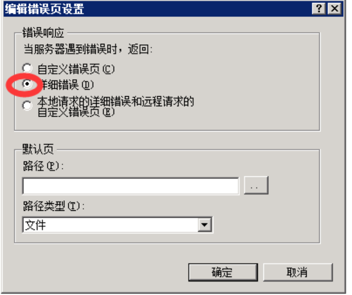 (注意这样设置会造成用户的自定义404等出错无效,请在查看后恢复回原来的第三项“本地详细错误和远程请求的自定义错误页”)