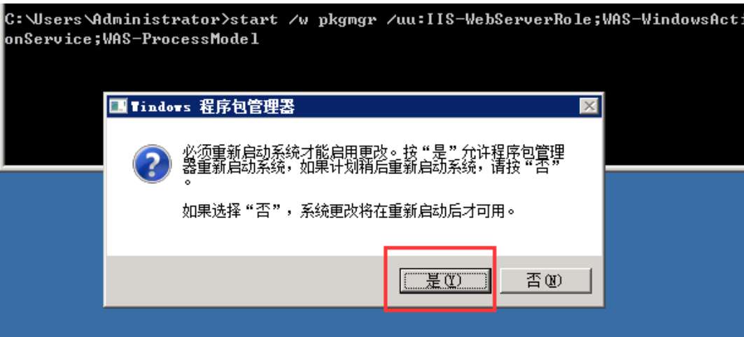 start /w pkgmgr/uu:IIS-WebServerRole;WAS-WindowsActivationService;WAS-ProcessModel