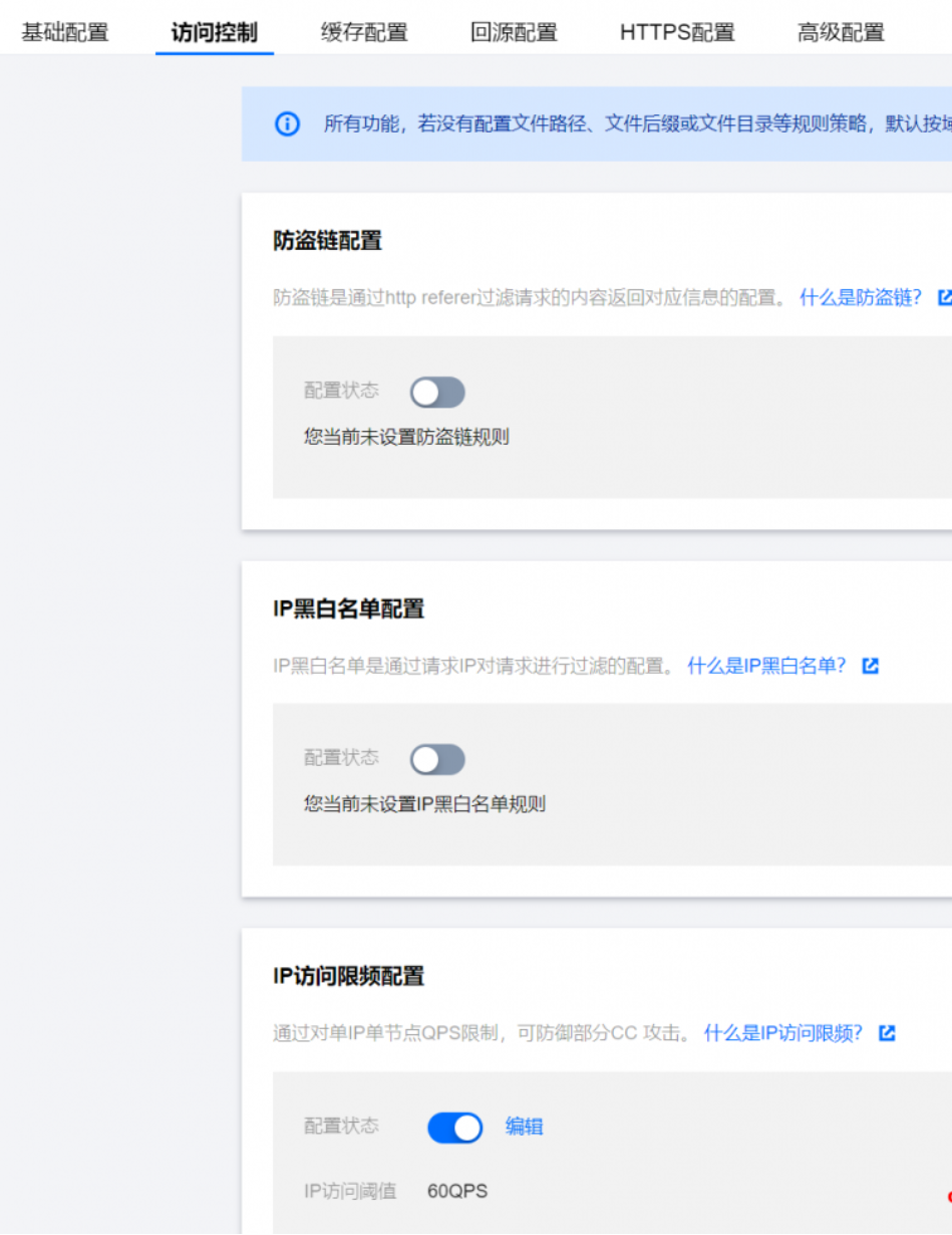 每秒单个IP限制10QPS~60QPS,尽量设置合理,否则无法访问。每秒限制可以防止采集、CC攻击。