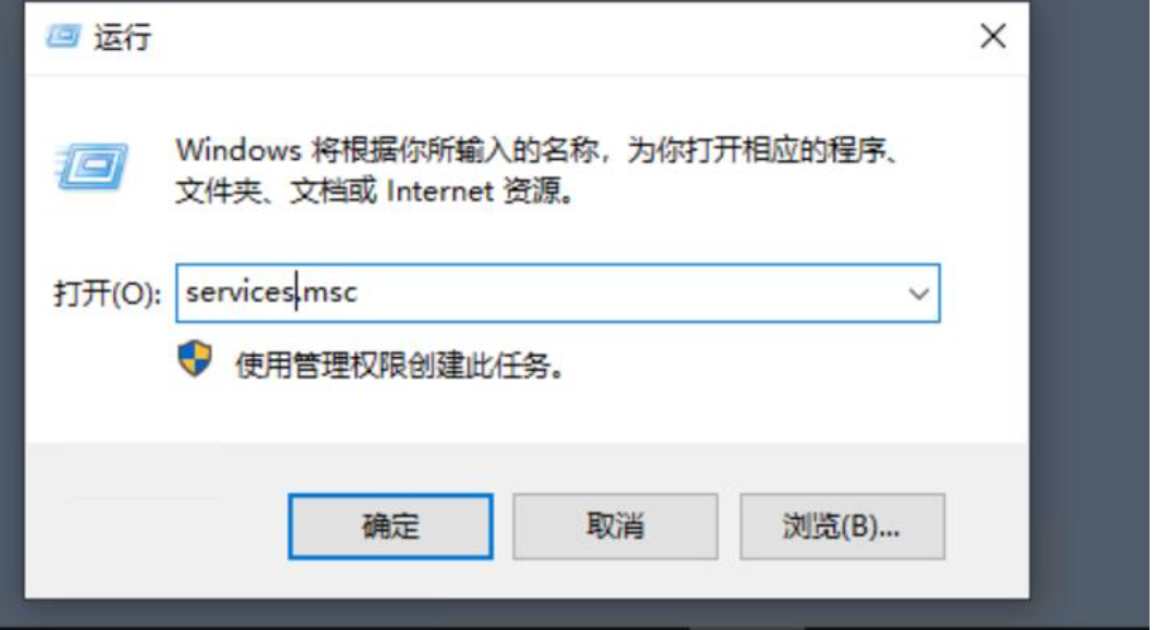 2、运行窗口,输入【services.msc】命令,按【确定或回车】打开服务;