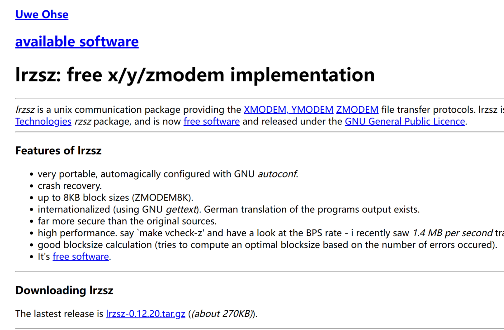 lrzsz 官网入口:https://ohse.de/uwe/software/lrzsz.html