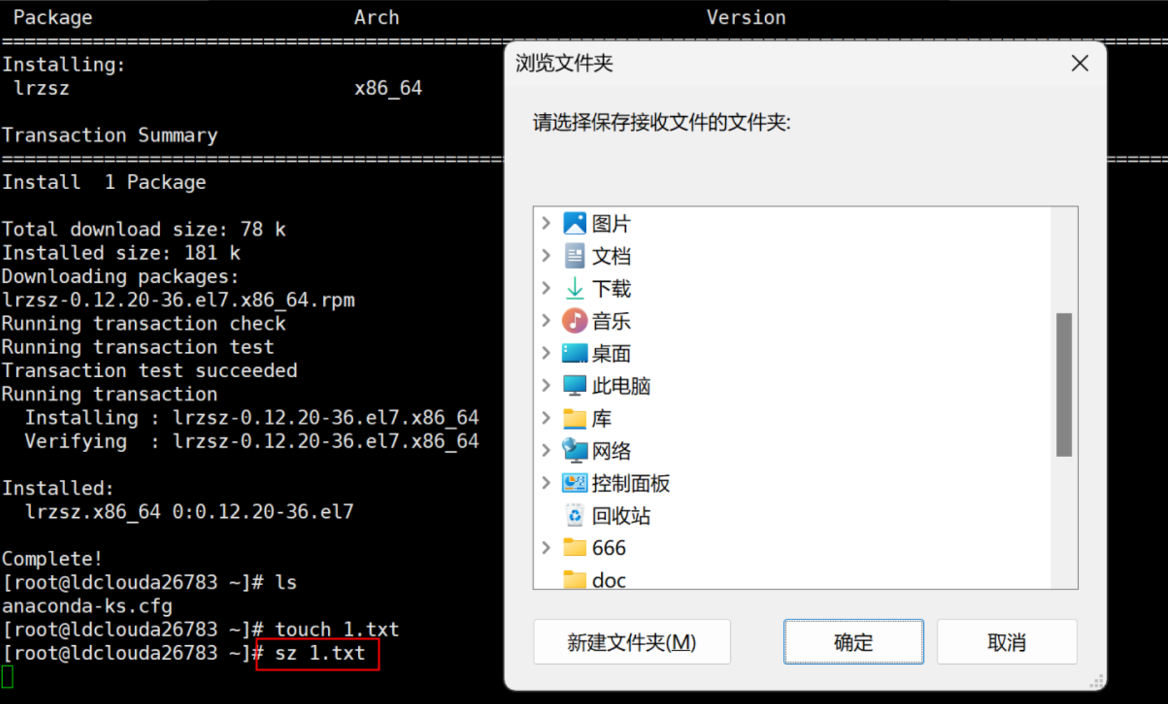 安装lrzsz文件接收发送软件: