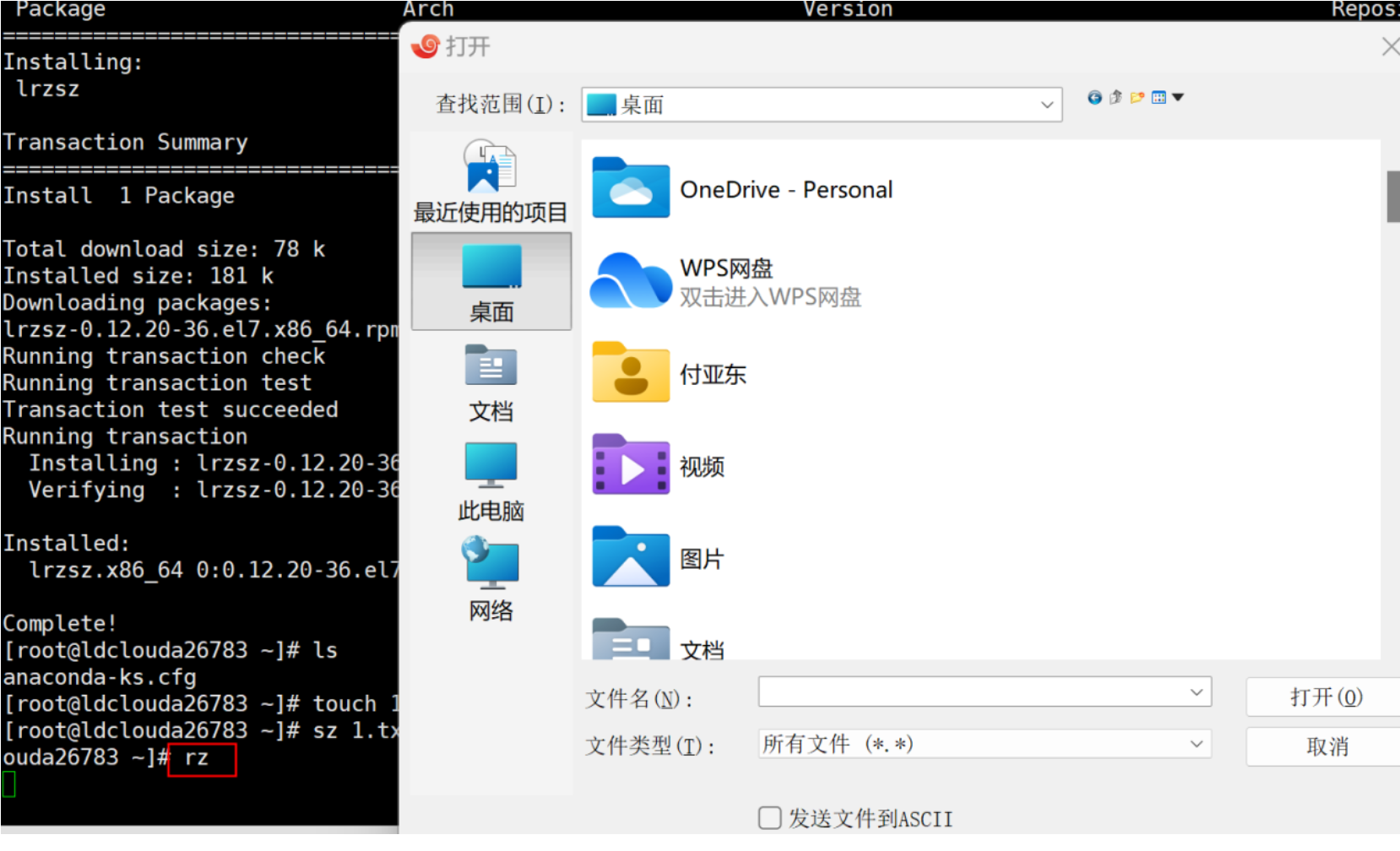 # rz (从客户端上传文件到linux服务端)
