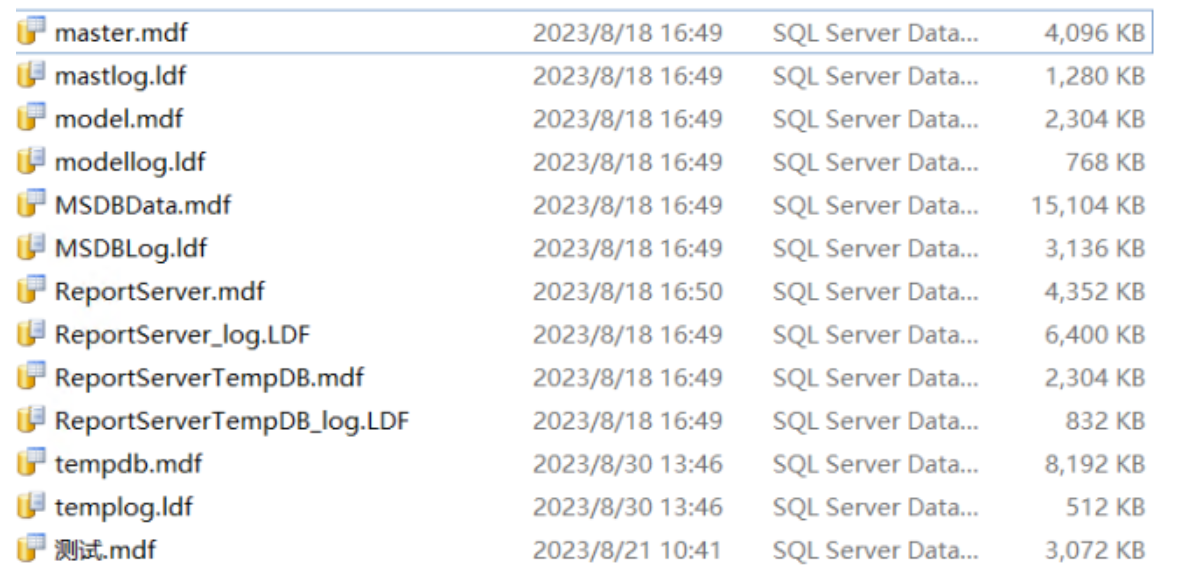 SQL Server 数据库中的三种类型的数据文件: