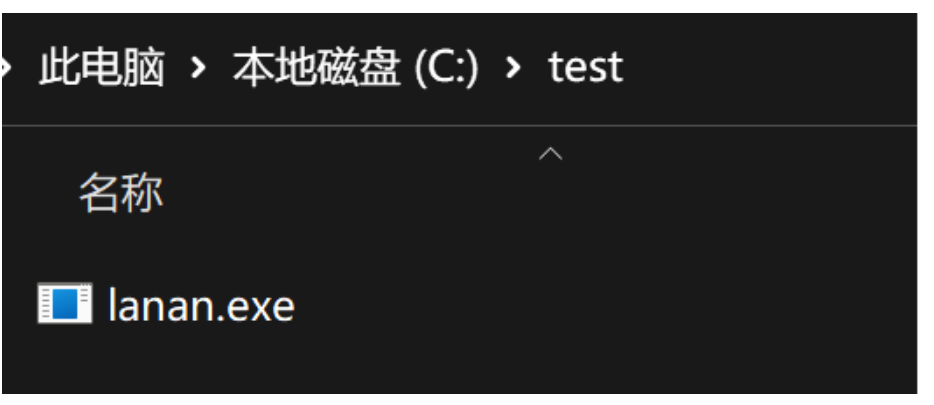 假设已有程序名称为lanan.exe,被放在了C盘test文件夹下。