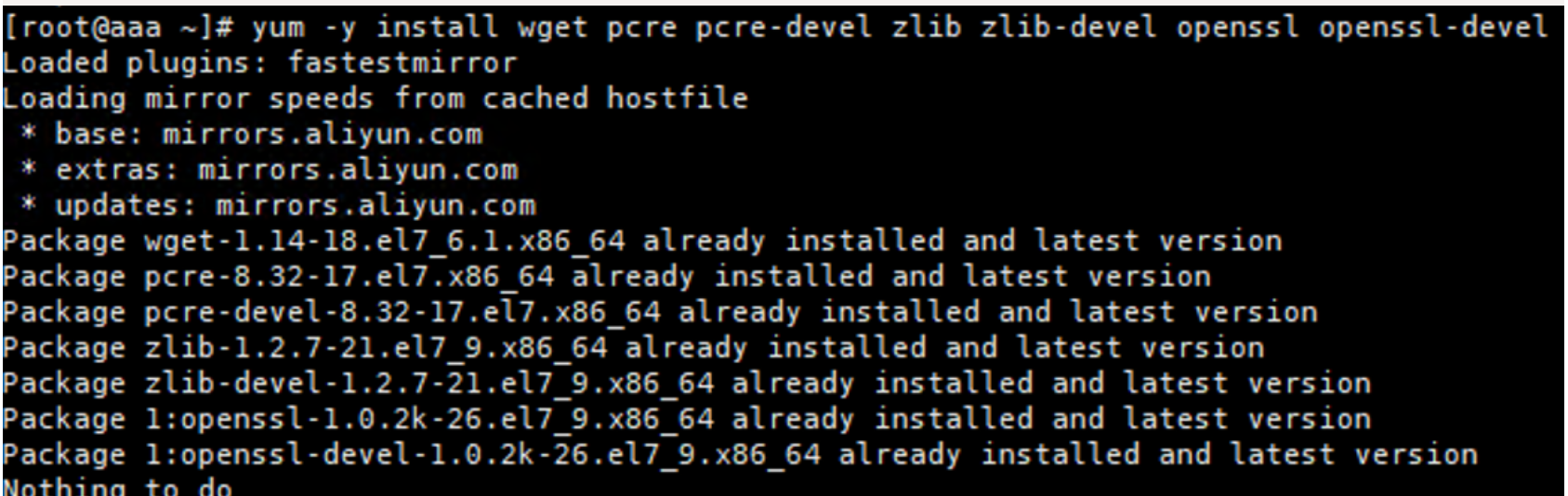 $ yum -y install wget pcre pcre-devel zlib zlib-devel openssl openssl-devel
