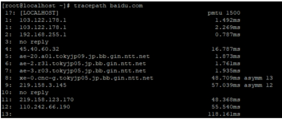 1.对目标地址进行路由跟踪,tracepath 目标地址