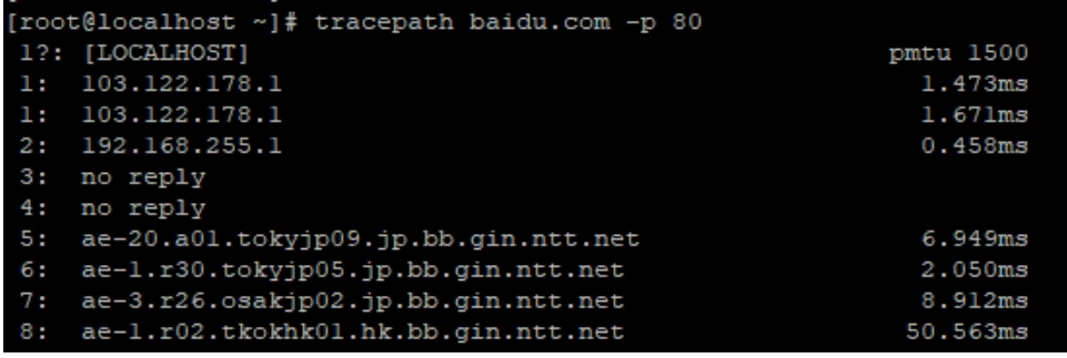 2.对目标地址的端口进行路由跟踪,tracepath 目标地址 -p 端口号