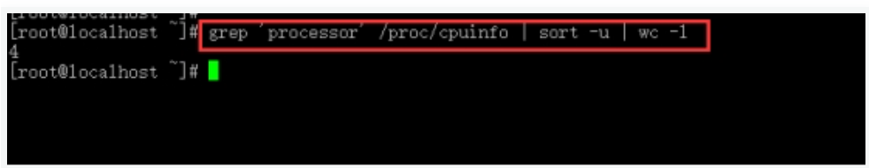 3.输入grep 'processor' /proc/cpuinfo | sort -u | wc -l查看CPU的个线程数。