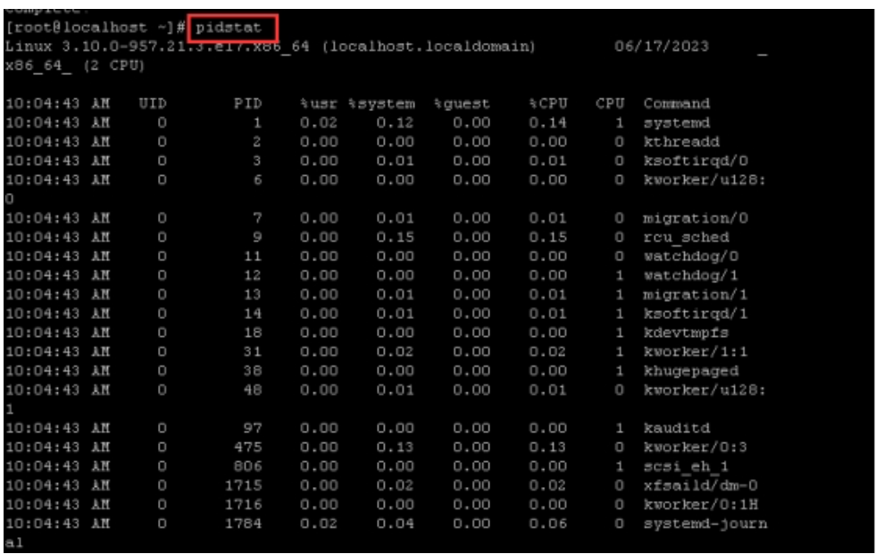 2.pidstat,输入该命令按回车键查看进程占用资源情况