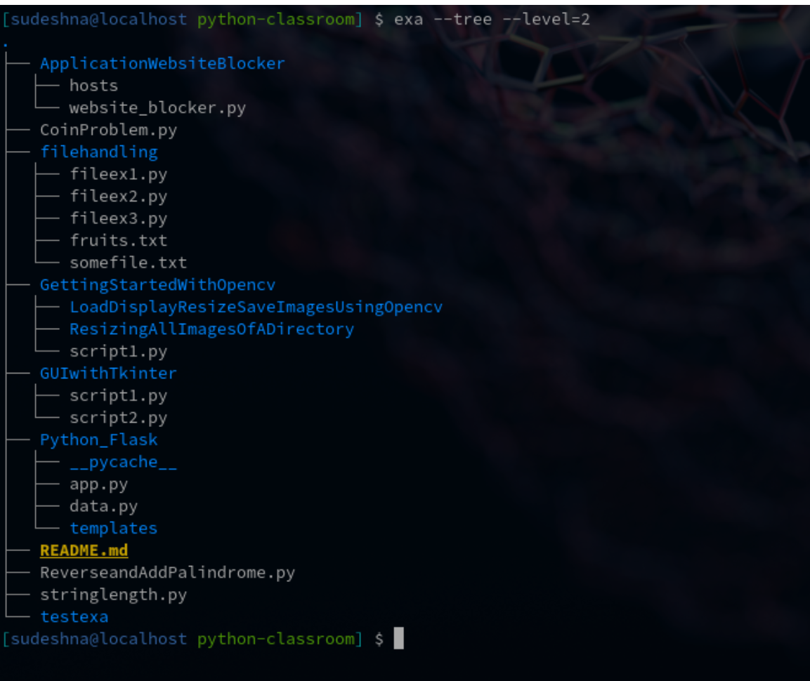 这是exa的基本树形结构。级别决定了列表的深度,设置为2。如果你想列出更多的子目录和文件,增加级别的值。