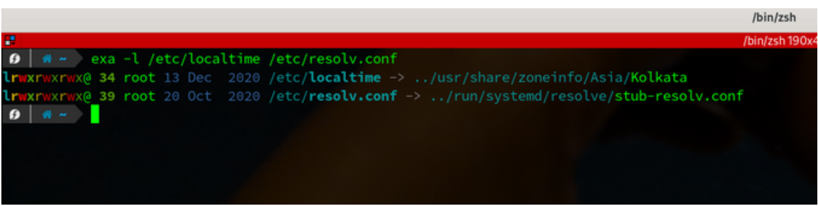 Exa了解符号链接,也指出了实际的文件。