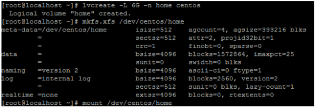 6、创建home lv分区。 lvcreate -L 6G -n home centos