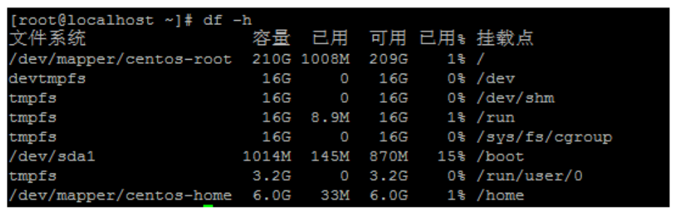 8、挂载/ home后查看分区大小 mount /dev/centos/home