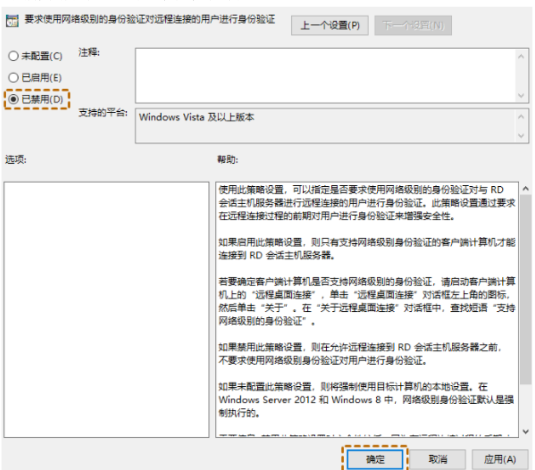 3.然后将其设置为“已禁用”,再单击“确定”。