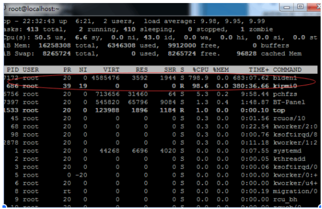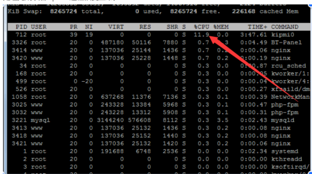 执行之后可临时降低使用率kipmi0的CPU使用率