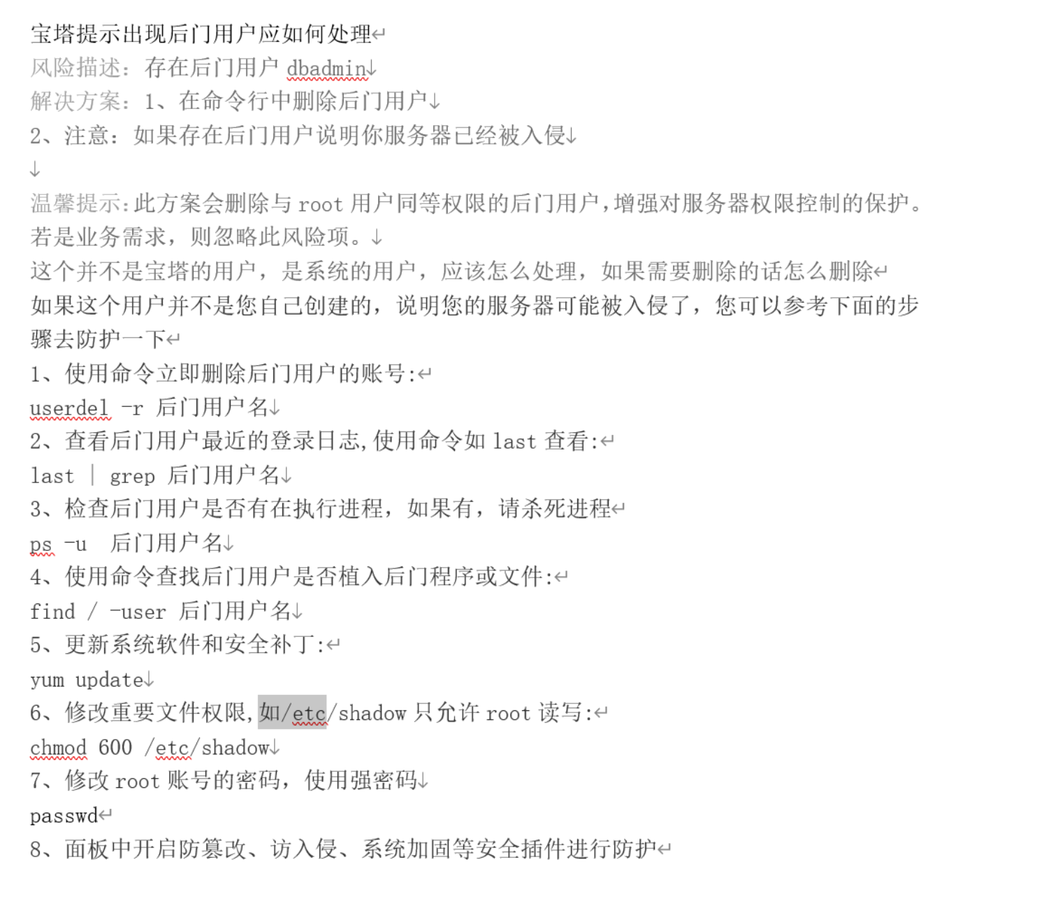 宝塔提示出现后门用户应如何处理