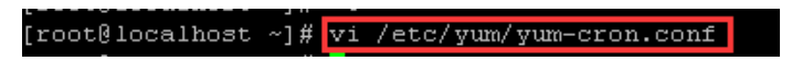 2.vi /etc/yum/yum-cron.conf,输入该命令按回车键执行