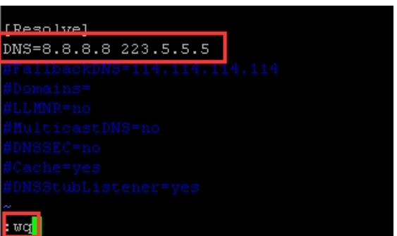 1.输入该命令按回车键:vi /etc/systemd/resolved.conf