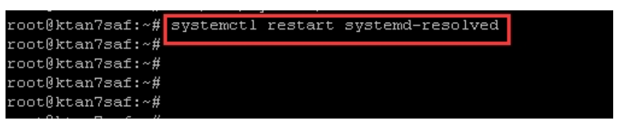 3.输入该命令按回车键:systemctl restart systemd-resolved