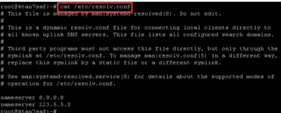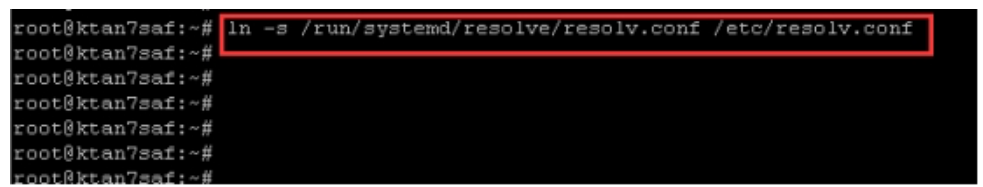 6.输入该命令按回车键:ln -s /run/systemd/resolve/resolv.conf /etc/resolv.conf