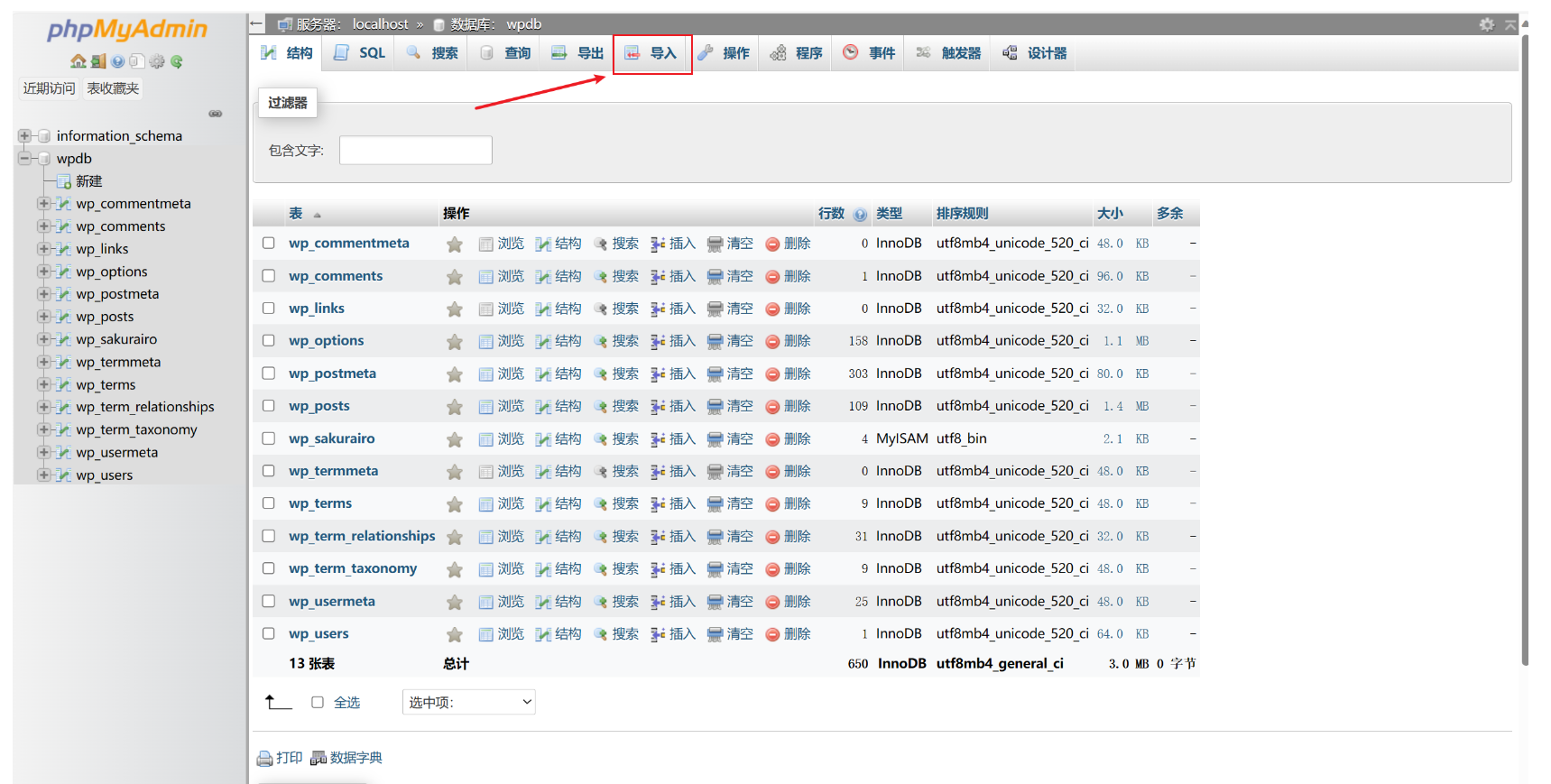 mysql -uroot -p --default-character-set=utf8 dbname# 范例mysql -uroot -p --default-character-set=utf8 wpdb方法二:通过phpmyadmin导入导出数据库