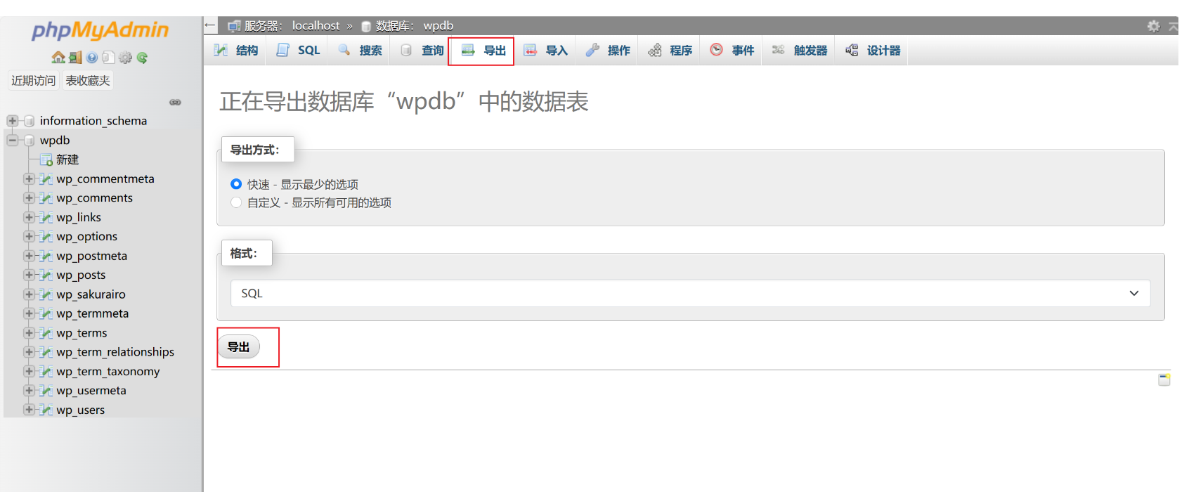 - 导出数据库