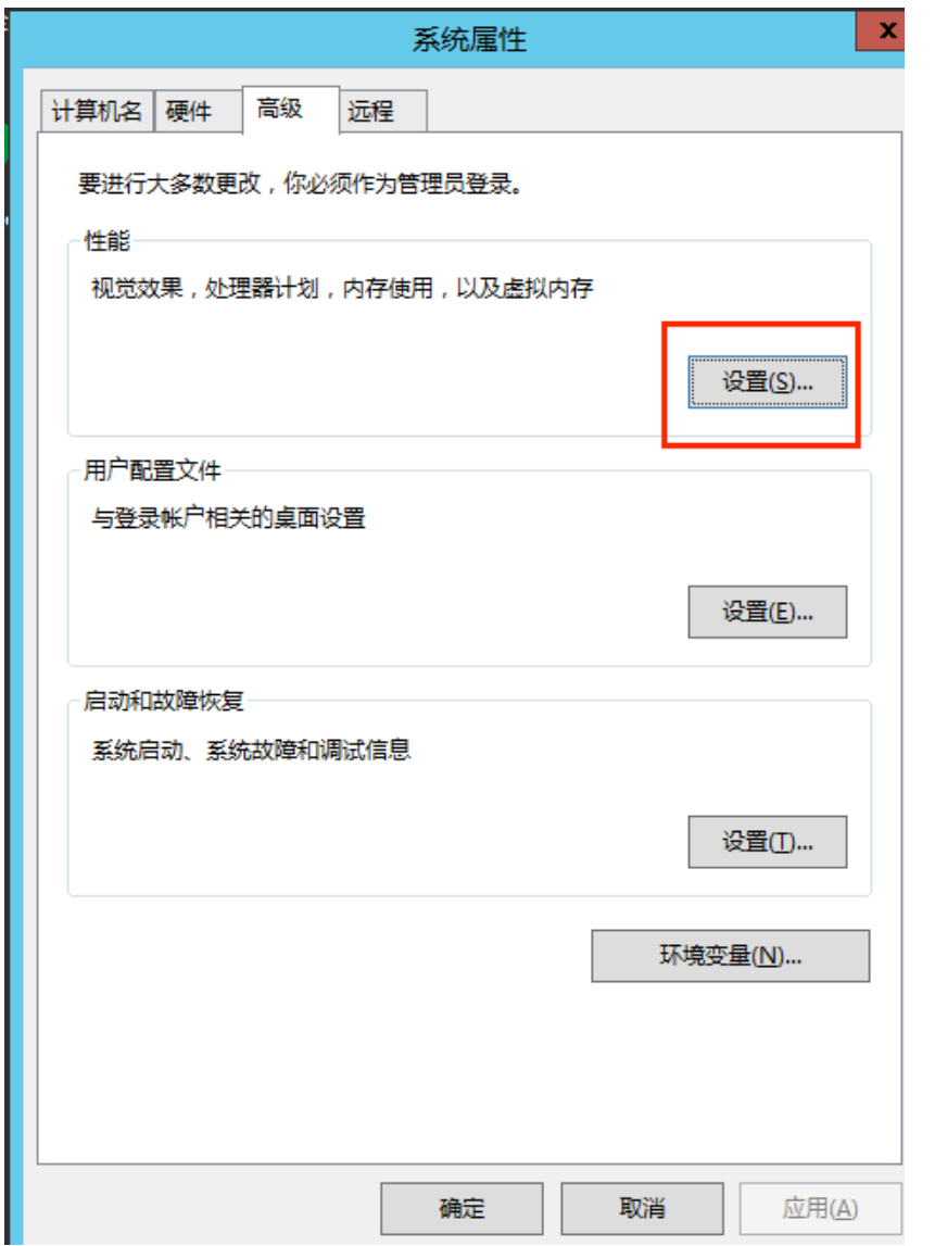 3.选择高级 -> 在性能栏里选择设置