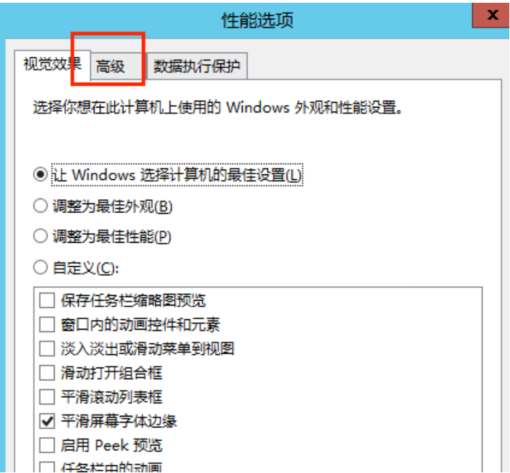 4. 在性能选项中选择高级