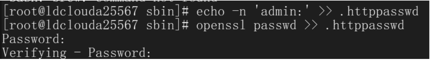echo -n 'admin:' >> .httppasswd