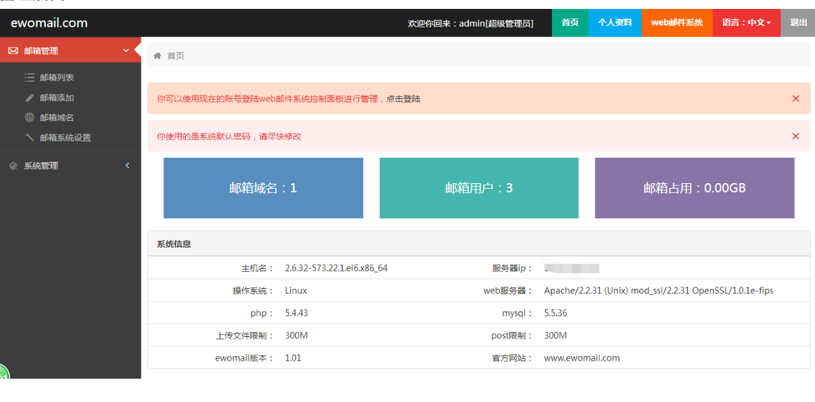 检查swap是否已启动,如没启动需要配置启动swap。下载EwoMail邮件服务器