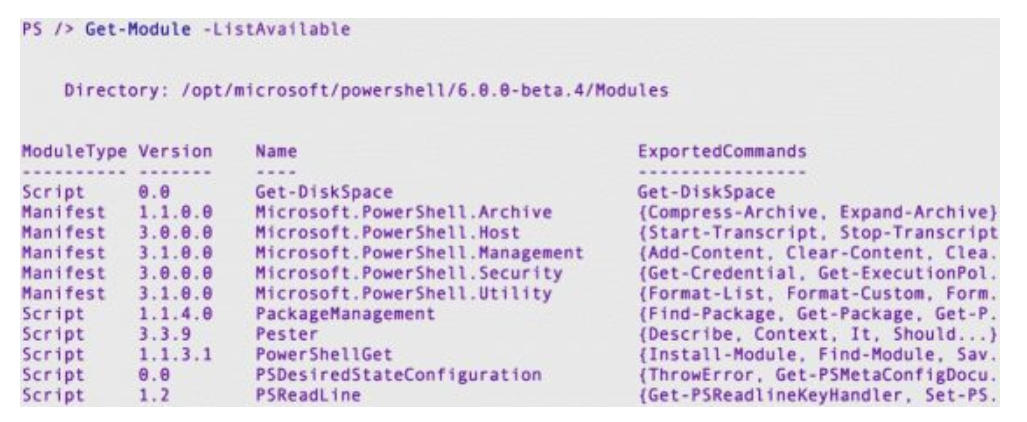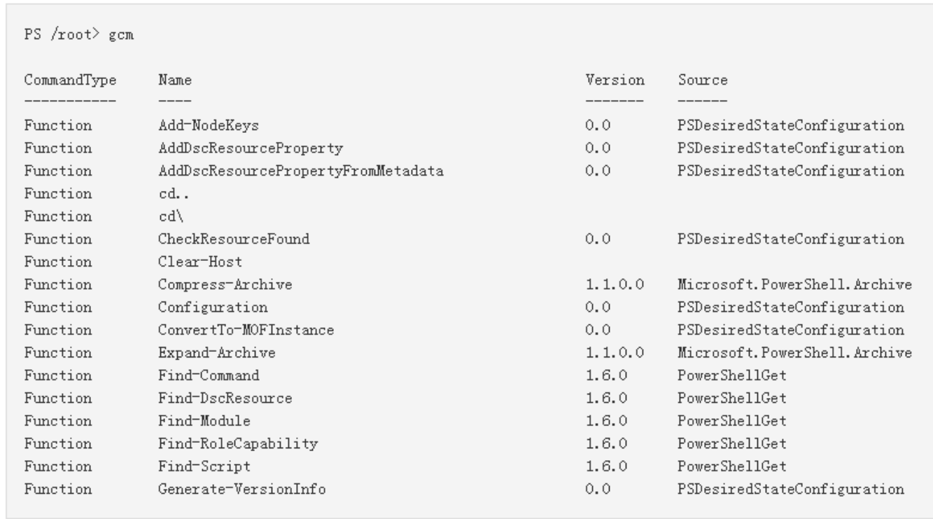 现在你已经准备好在Linux上运行Powershell了。通过运行 "gcm'/get-command "来查看包含的cmdlets。