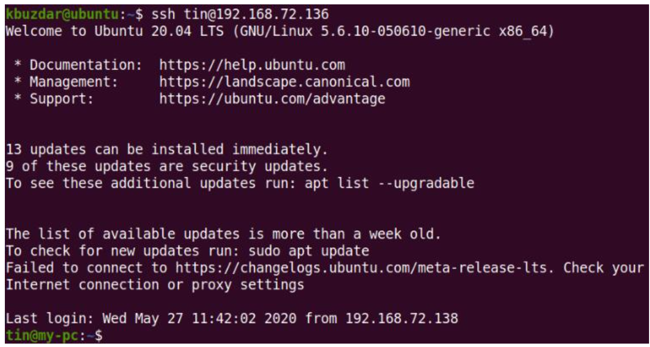 $ ssh-copy-id tin @ 192.168.72.136