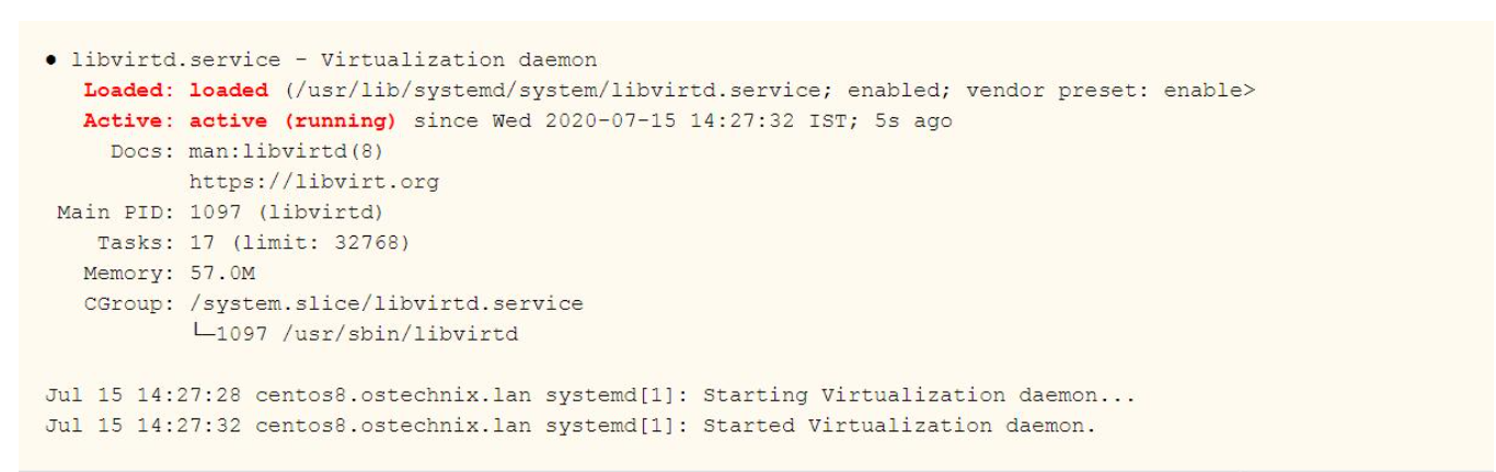使用以下命令检查libvirtd服务的状态: