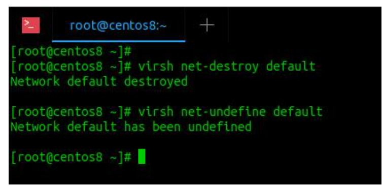 如果以上命令由于任何原因都不起作用,则可以使用以下命令禁用和取消定义KVM默认网络: