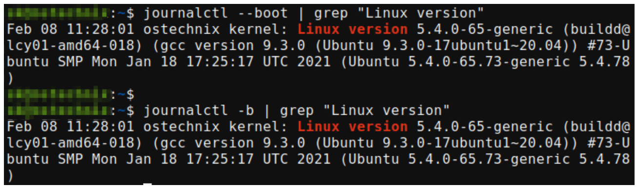 $ journalctl -b | grep "Linux version"
