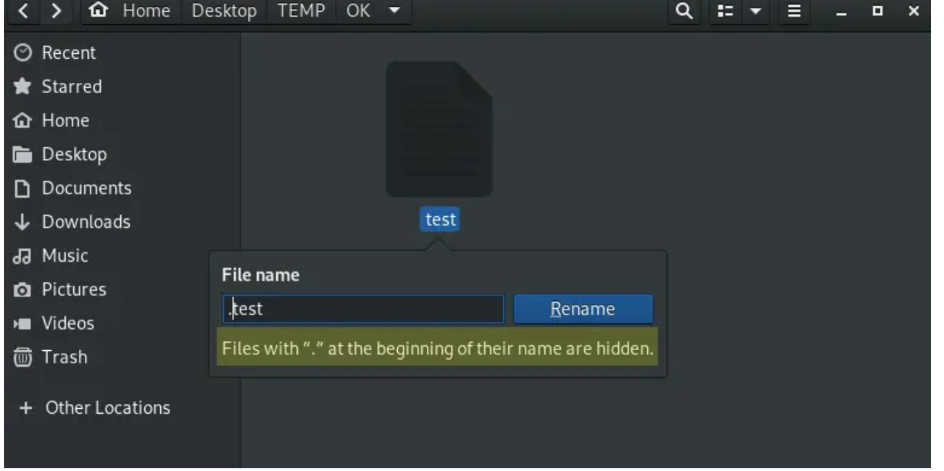 我们可以通过重命名来隐藏这个文件,并将点.作为名称中的第一个字符。