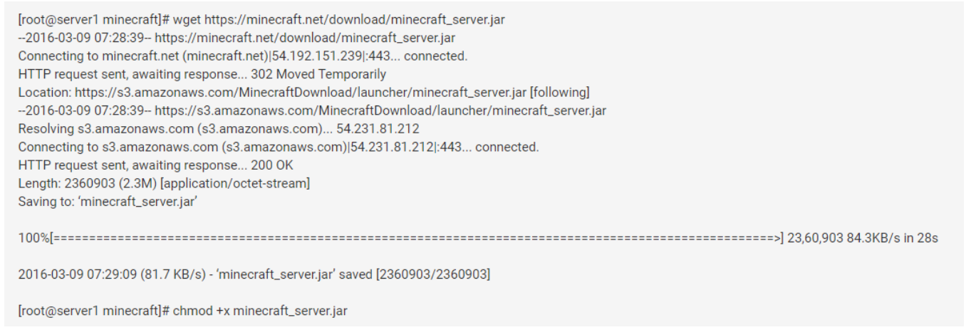 将安装许多软件包。现在,我们需要下载Minecraft服务器软件包到“minecraft”文件夹中。