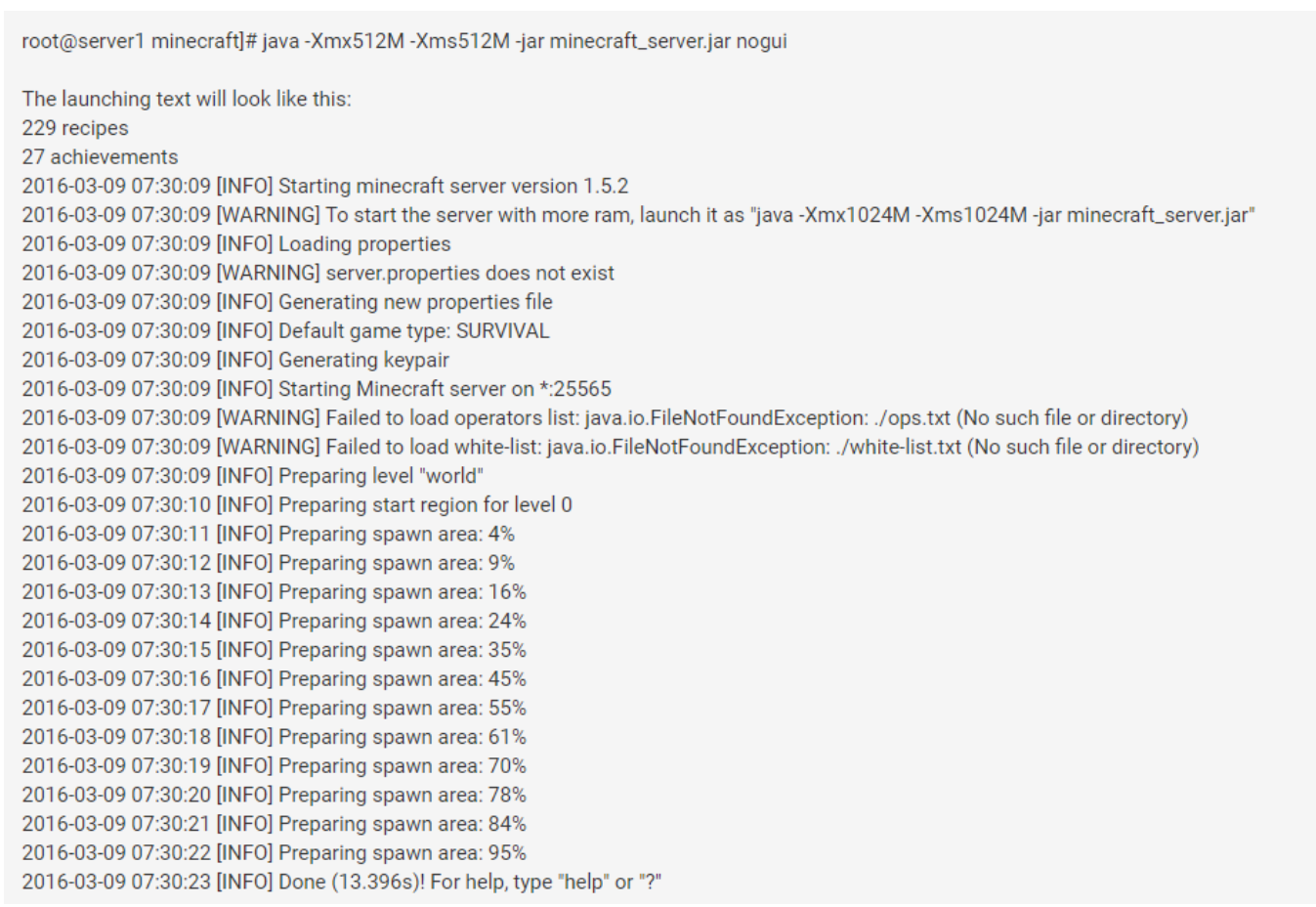 # java -Xmx512M -Xms512M -jar minecraft_server.jar nogui
