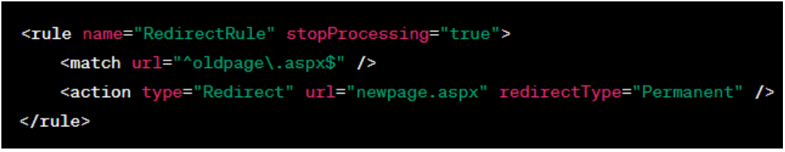 这个规则会将 /oldpage.aspx 重定向到 /newpage.aspx。